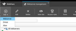 The main screen offers an overview of existing webservers. Three types of server are supported: