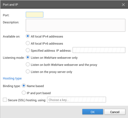 To add a binding for port and IP, fill in the port field and set the other settings.